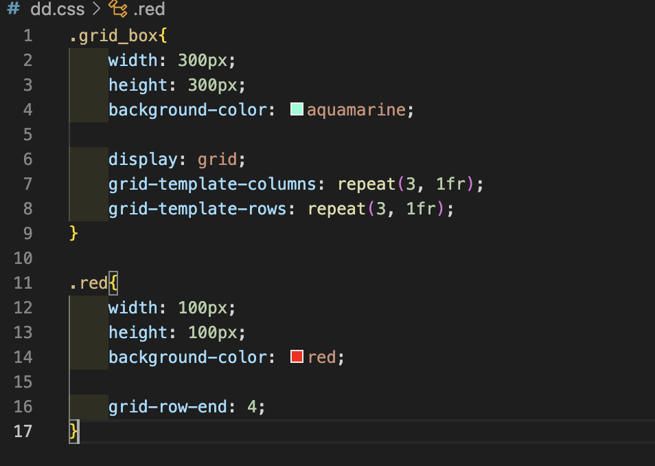 먼저 grid-row-end는 지정해둔 grid 영역에서
